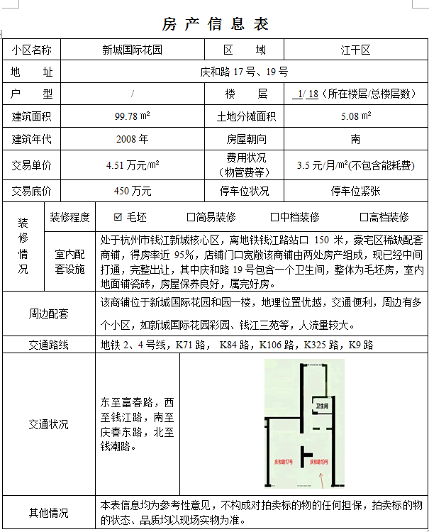 三、本次交易是经依法信息披露及展示后才举行的。本次交易标的以现场实物展示为准。杭交所对交易标的的介绍及评价,均为参考性意见,不构成对交易标的物的任何担保,对交易标的物的状态、品质和瑕疵不作担保。