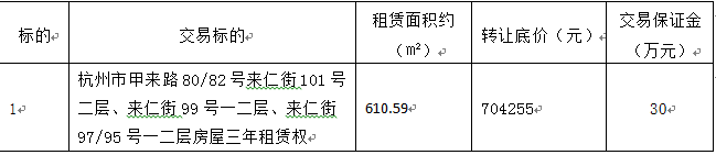 杭州市甲来路80/82号来仁街101号二层、来仁街99号、来仁街97/95号租赁权交易公告