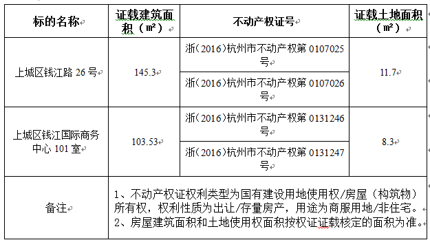 受委托,将于2018年02月07日上午9:00至下午3:00 (延时报价阶段除外)在杭州产权交易所旗下产金所020网站(以下简称网站)对下列标的进行公开交易。