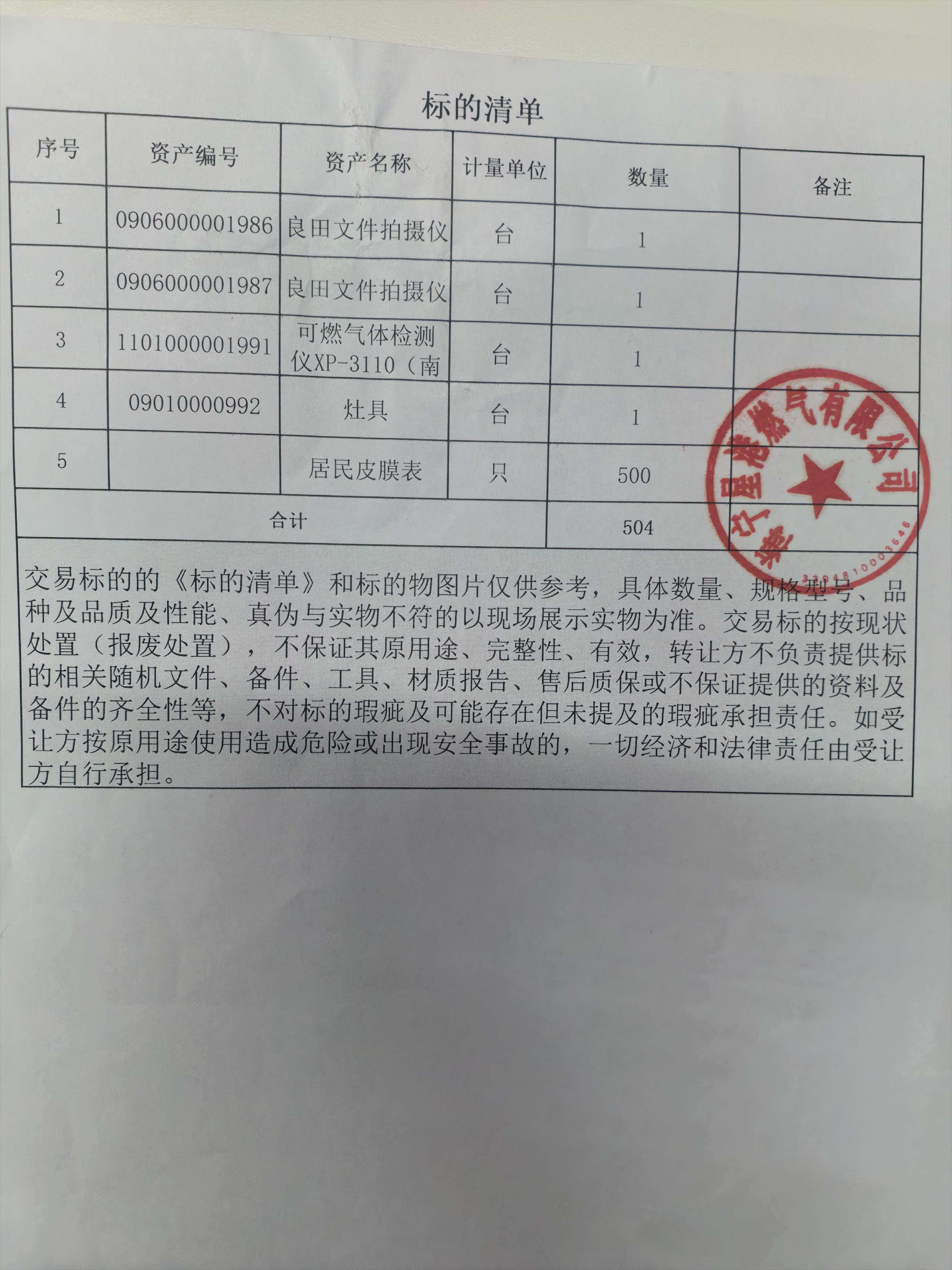 1、本项目经依法展示后举行,标的以现场实物展示为准,意向受让方应当详细阅读本项目所涉及披露内容,有责任自行了解标的的状况,认真进行现场踏勘。意向受让方提交受让申请并且交纳交易保证金后,即视为已详细阅读并完全认可本项目所披露内容以及已完成对标的的现场踏勘,表明已完全了解并自愿接受标的的全部现状及瑕疵,并自愿承担一切交易风险。 2、意向受让方须书面承诺: (1)同意在被确定为受让方之日起5个工作日内签署《资产交易合同》、《安全、消防协议书》;并在《资产交易合同》、《安全、消防协议书》签署之日起5个工作日内向杭交所指定账户一次性支付交易服务费、履约保证400元、交易价款等交易资金(以到账时间为准); (2)同意杭交所在经转让方申请之日起3个工作日内将受让方已交纳的交易价款全部划转至转让方指定账户。 (3)知悉并承诺:交易标的的《标的清单》和标的物图片仅供参考,具体数量、规格型号、品种及品质及性能、真伪与实物不符的以现场展示实物为准。交易标的按现状处置(报废处置),不保证其原用途、完整性、有效,转让方不负责提供标的相关随机文件、备件、工具、材质报告、售后质保或不保证提供的资料及备件的齐全性等,不对标的瑕疵及可能存在但未提及的瑕疵承担责任。如受让方按原用途使用造成危险或出现安全事故的,一切经济和法律责任由受让方自行承担。 (4)知悉并承诺:受让方认可其在向杭交所提交受让申请并且交纳交易保证金之前,已在交易标的展示地对交易标的进行了认真的现场踏勘,已完全了解并自愿接受交易标的的全部现状及瑕疵,并自愿承担一切交易风险。受让方同意按照交易标的现场展示之现状接受交易标的,受让方对交易标的的质量等没有任何异议。无论何时、何种原因,受让方不得对交易标的的质量等提出任何主张,也不得要求转让方承担任何维修义务。 (5)转让方不保证基于交易标的产生的废品是可用的,不保证其完整性、品质及其原用途,不负责技术质量保证及售后服务,不承担一切瑕疵担保责任,并且不能保证主体和附件是否完好无损,均以现场实物现状为准。资产状况、数量与质量均以移交时的实物现状为准,本次披露的《标的清单》及照片仅供参考,不代表标的资产与其完全一致。无论受让方将废品用于何种目的(包括但不限于出售),转让方均不承担任何责任,受让方自行承担废品再生利用过程中的一切责任。 (6)知悉并承诺:受让方需自行了解为完成标的资产清(拆)运工作所需的国家及标的所在地法律法规规定资质、条件和限制,如因意向受让方不符合相关政策法规的规定或按原用途使用而造成危险或出现事故的,责任由意向受让方承担。 3、意向受让方须自行了解其对转让标的受让事项是否符合中国现行法律法规及标的所在地相关政策。 4、本次交易标的的交付,受让方付清交易服务费、履约保证金、交易价款等交易资金后,由转让方负责与受让方办理。 5、本项目标的交付、转受双方的权利义务以及拆除的相关要求以转让方提供的《资产交易合同》(样本)及《安全、消防协议书》(样本)为准。 6、本项目受让方须交纳成交金额4%的交易服务费。 |