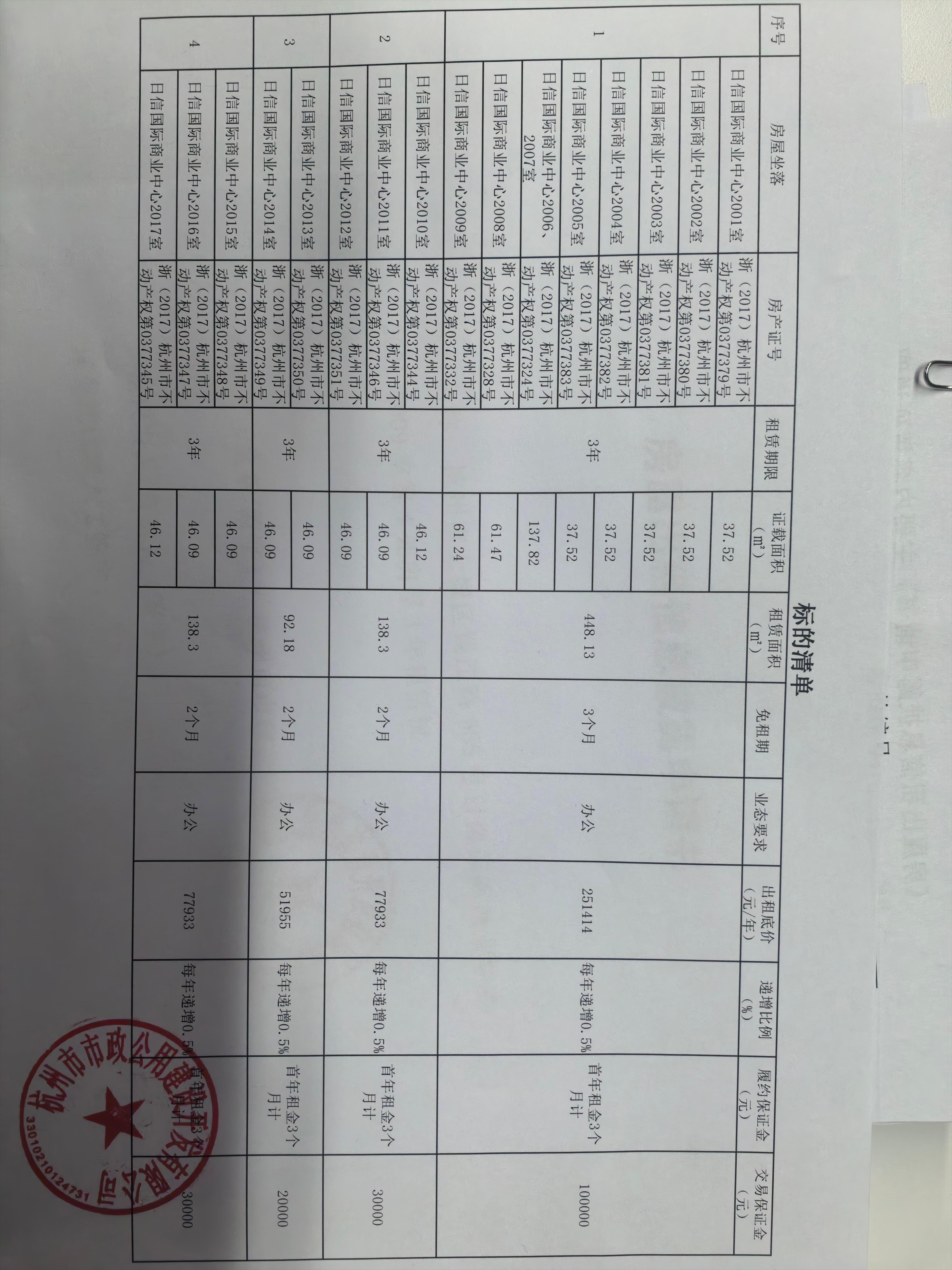 杭州市日信国际商业中心2001-2009室3年租赁权 |