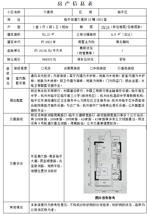 杭州市临平区临平街道久境府18幢1503室房产 |